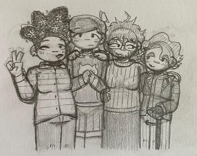 regarding the project itself, i'm planning on telling the story visually through comics for each script or "memento" (there are 10 mementos in total). mementos 1-7 can also be listened to in podcast form on anchor. i'm also planning on sharing additional content like extra comics that show character dynamics and more interpersonal events (these characters do have a story, but they still interact with each other outside of the story). i'll post updates when i can :)